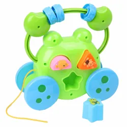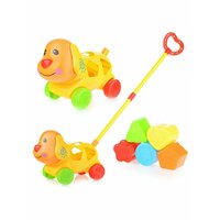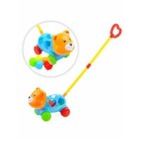 Яркая и красивая игрушка-каталка с ручкой помогает ребенку делать первые шаги, а так же развивает чувство цвета, формы, моторику и логику.