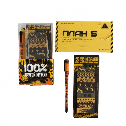 Подарочный набор «100% крутой мужик» - это набор, который будет отличным подарком для любого мужчины. В него входят планинг на 50 листов, стикеры-закладки и ручка из пластика.;