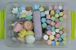 Набор включает в себя разные по размерам и формам цветные мелки которые смогут заинтересовать маленьких художников . Необычная форма мелков позволит детям не только рисовать но и играть с мелками....