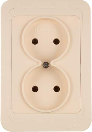 Розетка с рамкой Mimoza 25017 двойная скрытая установка бежевая без заземления