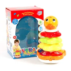 Яркая уточка привлечёт внимание малышей весёлыми звуками, мигающими огоньками, любимыми песенками и мелодиями ("Бояка",...