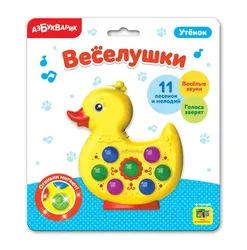 Веселушки – музыкальные игрушки для самых маленьких! Яркая уточка привлечёт внимание малышей весёлыми звуками, мигающими огоньками, любимыми песенками и мелодиями ("Бояка",...