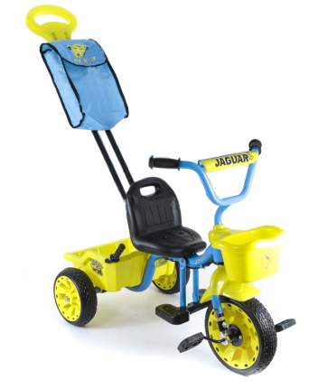 Детский трехколесный велосипед Jaguar 0739 для малышей от 1 года до 3-х лет. Доступный, надежный и долговечный! Велосипед с увеличенным радиусом колеса! Ручка для родителя с функцией управления рулем...