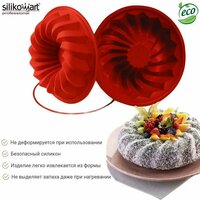 Силиконовая форма кирпичного цвета. Размер: диаметр 220 мм, высота 110 мм.Объём: 2,2 л. К форме прилагается 1 суппортное кольцо.;