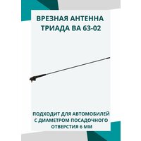 Антенна врезная "Триада - ВА 63-01" - это пассивная антенна для приема Радио. Именно эта антенна нашего производства устанавливается на Автомобили Шевроле - Нива в качестве штатной...