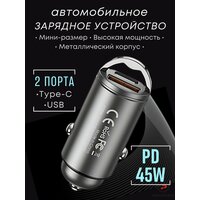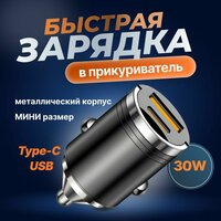 Мини зарядка в прикуриватель USB Type-C - своим компактным размерам и потайному корпусу, это зарядное устройство в машину легко подключается в любом автомобиле.;