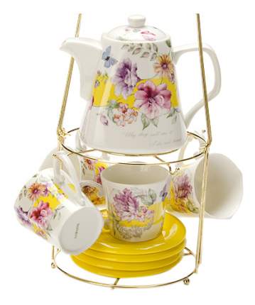 Чайный набор состоит из 4 чашек, 4 блюдец фигурной формы и заварочного чайника. Предметы набора изготовлены из качественной керамики, чашки и чайник оформлены ярким изображением цветов. Все предметы...