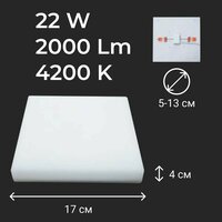 Мощность светильника: 22.000, Тип лампы: встроенные светодиоды, Цветность: холодный белый (более 5000 К), Основной цвет: белый, Тип: потолочные, Материал корпуса: металл, Материал плафона: пластик, Цвет плафона: белый, Тип колбы: нет, Тип рассеивателя: матовый