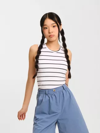 Топик для девочки айтем, который уже успел стать бессмертной классикой! С ним любой аутфит становится эффектным, а настроение становится по-настоящему летним! Майка топ для девочки выполнена из...
