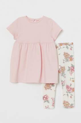 Комплект одежды H&M для девочек — однотонное платье с коротким рукавом и леггинсы с цветочным принтом. Взаимно сочетаются, можно носить по отдельности. Платье из мягкого хлопкового трикотажа —...